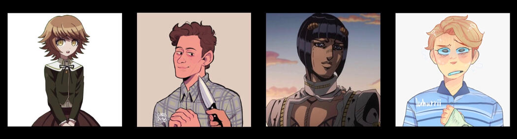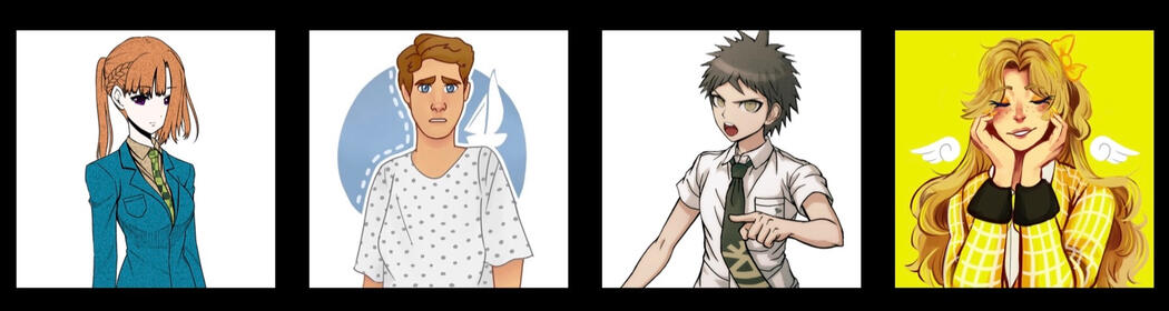 connor murphy, roger davis, gin ibushi, joe tazuna, makoto naegi, mondo owada, sakura ogami, veronica sawyer, leone abbacchio, michael mell, adam & barbara maitland, jason weisenbachfeld, charlotte & cordelia, bram greenfeld, charlie kelly, elle woods